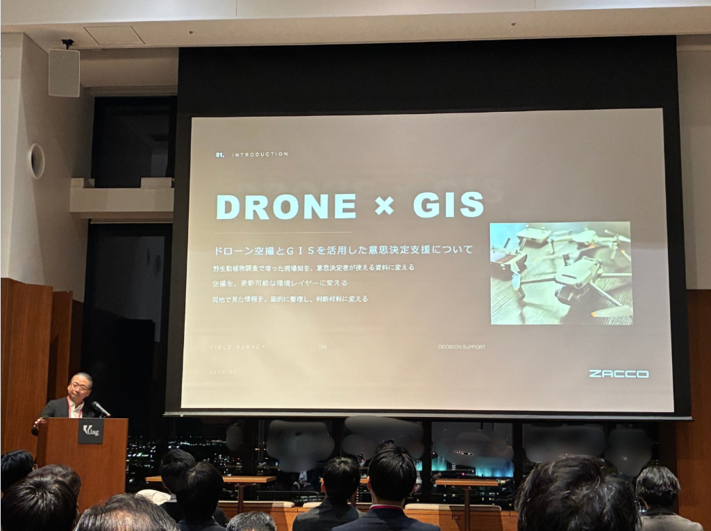 当日は、野生動植物の現地調査で得た情報を、空撮やGIS解析を通じてどのように整理し、意思決定支援につなげているかについてご紹介しました。