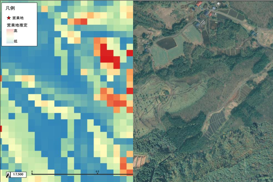 Maxentによる営巣地推定(イメージ)