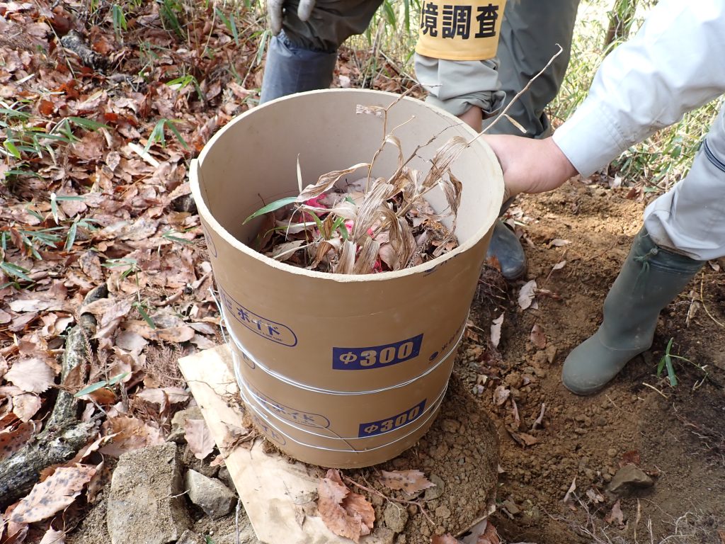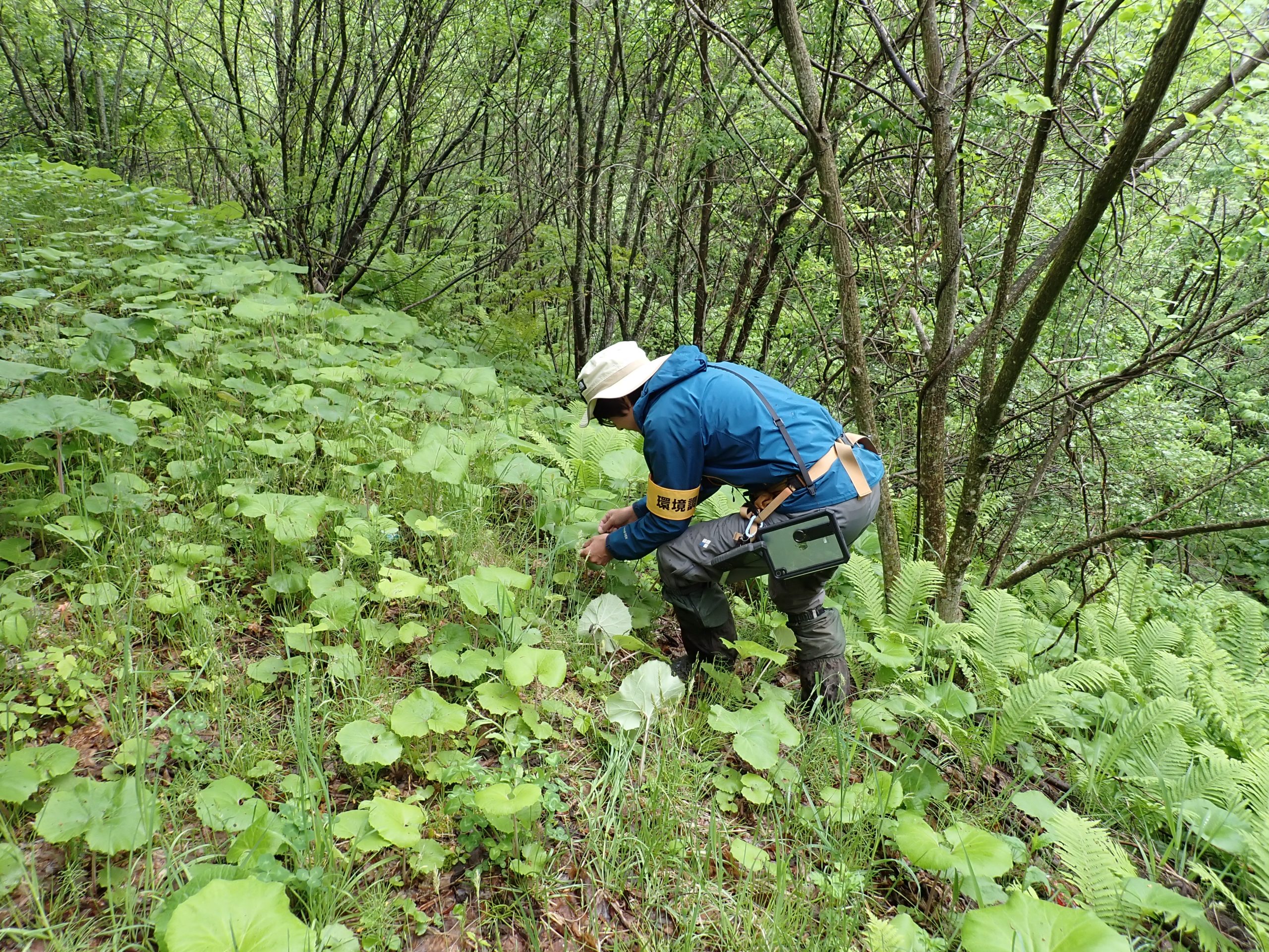 植物調査は、目視確認による植物相調査のほか植物群落調査などがあります。植物群落調査は、植物群落の面的な広がりを記録し、各群落で設定されたコドラート内での群落構造を調べます。